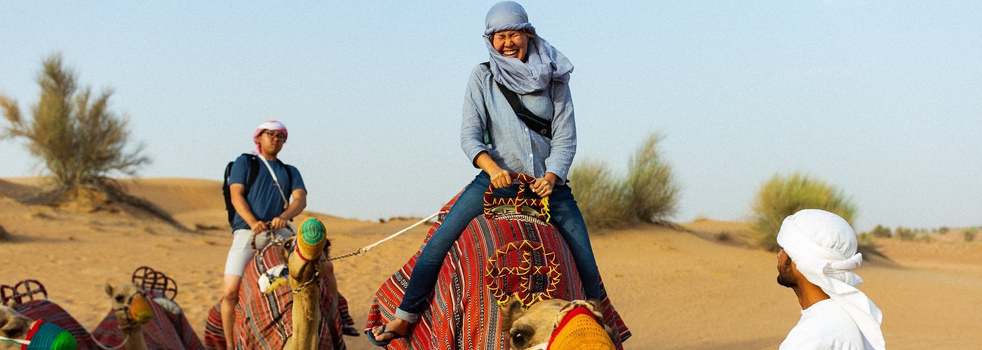 In the afternoon, gear up for an adrenaline-pumping Desert Safari! Experience the thrill of dune bashing in a 4x4 vehicle, try sandboarding, enjoy a camel ride, and get traditional henna tattoos. As the sun sets over the golden dunes, relax at a Bedouin-style camp and indulge in a lavish BBQ dinner, complemented by belly dancing and Tanoura performances under the starry sky.